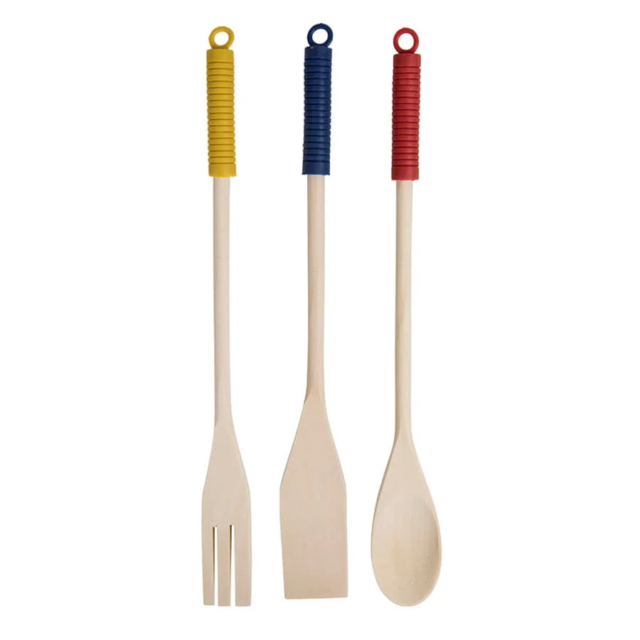 Лопатки помогут перевернуть стейк, поправить кекс в форме и сделать много других полезных вещей. Цветные силиконовые наконечники с ребристой поверхностью и удобной петлей позволяют ручкам не скользить в ладони на жаркой кухне.