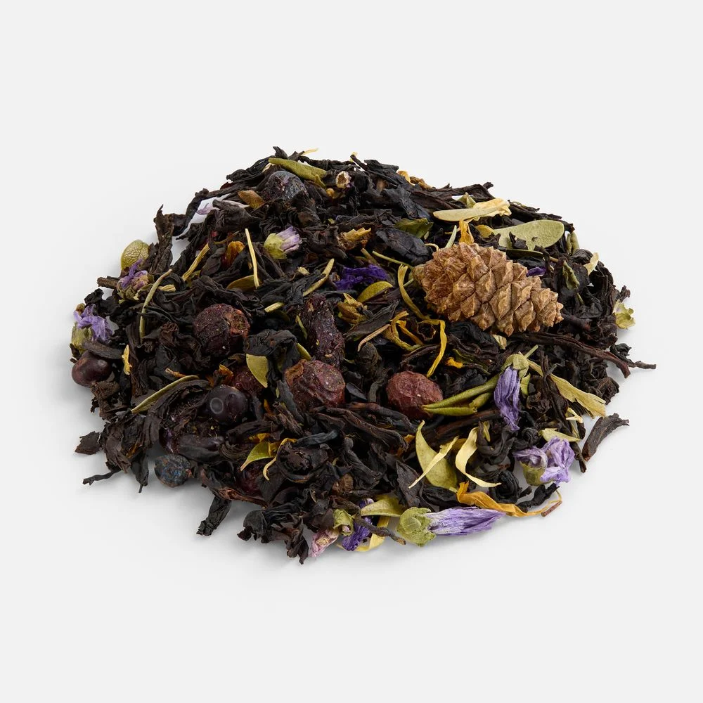 В наборе Forest Pump собраны дары сибирской природы: ароматный медовый десерт с хрустящими орехами, цукатами и семенами, а также травяной чай «Сила Сибири» на основе крепкого черного чая с лесными травами, ягодами и хвойными нотами, создающими гармоничный вкус со сладковатым послевкусием.